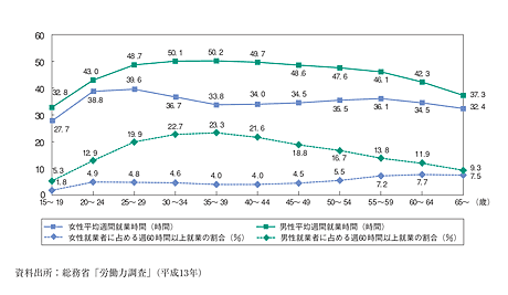 第15図 性・年齢階級別週間就業時間(非農林業)