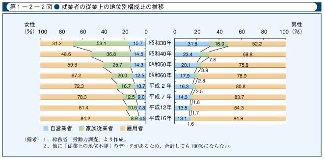 図表 > 第1-2-2図 就業者の従業上の地位別構成比の推移