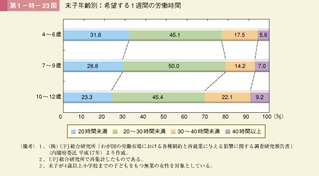 図表 > 第1部 > 特集 > 第23図 末子年齢別:希望する1週間の労働時間