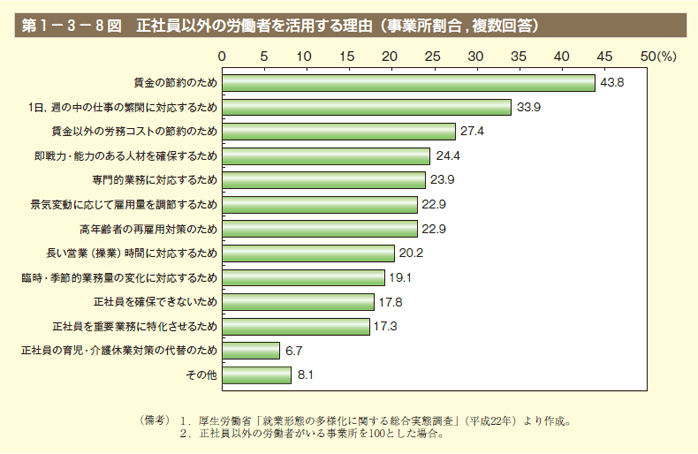 図表 > 第1部 > 第3章 > 第8図 正社員以外の労働者を活用する理由(事業所割合,複数回答)
