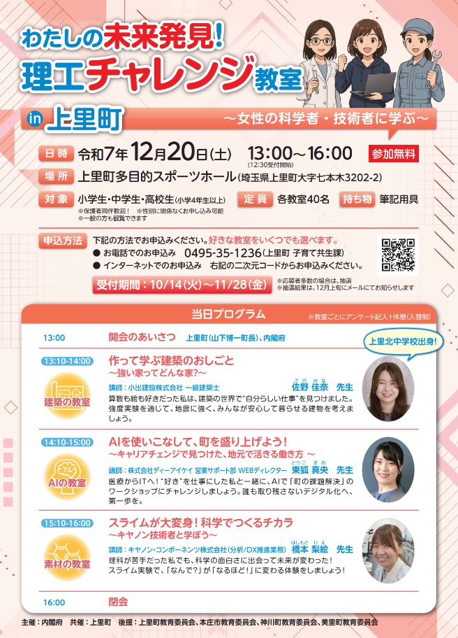 - わたしの未来発見!理工チャレンジ教室in上里町~女性の科学者・技術者に学ぶ~