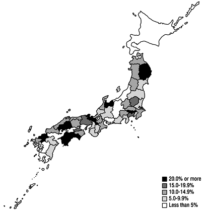 Figure 39: Ratio of women principals of elementary schools (by prefecture)