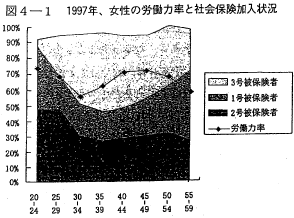 - 社会保険料を負担しない有業者 1988 13% 1997 22%と増加