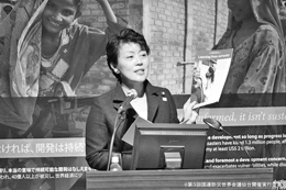 「女性と防災」テーマ館の特別プログラムとして、仙台市及び国連開発計画(UNDP)主催のシンポジウムが開催され、有村治子内閣府特命担当大臣(男女共同参画)が出席しました。
