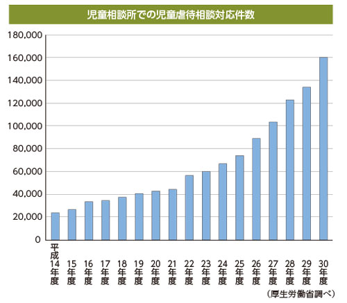 平成30年度に全国の配偶者暴力相談支援センターに寄せられた相談件数は年間11万件を超えて過去最多、全国の児童相談所の相談対応件数も15万件を超えている。