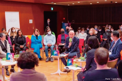 W7日本2023キックオフイベントでディスカッションに参加するパケ駐日EU大使(2023年1月)